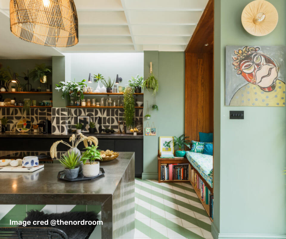 More colour the better! Clashing and collecting are top tips for creating that maximalist kitchen of your dreams. The complete opposite of minimalism, this style of décor is all about using a range of textures within the space. Think about wallpaper or using vibrant tiles within the space! Anything goes with maximalist décor! Here is a range of blinds that we think would look amazing within your colourful space. Banlight duo Fr Blue vertical, Lima Olive Roman, Palette Iris Roller and lastly our Berry Smoothie Perfect Fit.