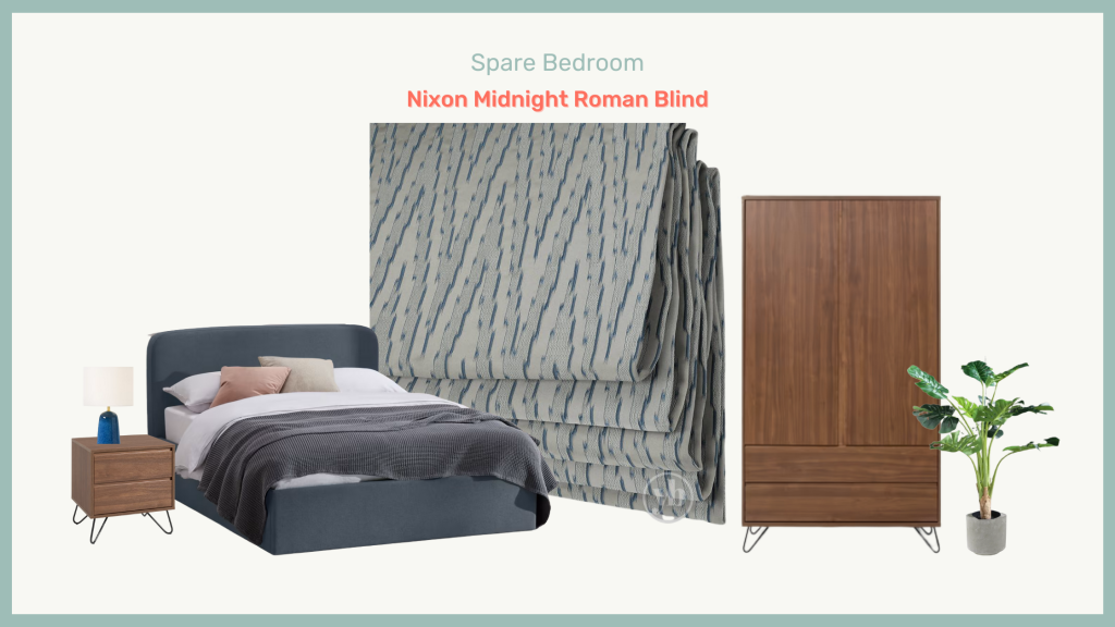 Featuring our Nixon Midnight roman blind! A modern addition to your window that really elevates the space. A roman blind offers a more relaxed yet luxurious feel for a bedroom space. Dazzle your guests in the spare room with a sophisticated design which is made from high-quality fabric. All our roman blinds come with the option of selecting a blackout lining that is free to add on. Ideal for blocking out the morning light! You can make your search easier by also ordering up to 8 free samples to get a feel for the texture and design of the fabric. Lastly, we also offer cushions to match all our roman blind fabrics, which allows you to create hotel vibes for your guest. However, they may not want to leave such a lavish space!